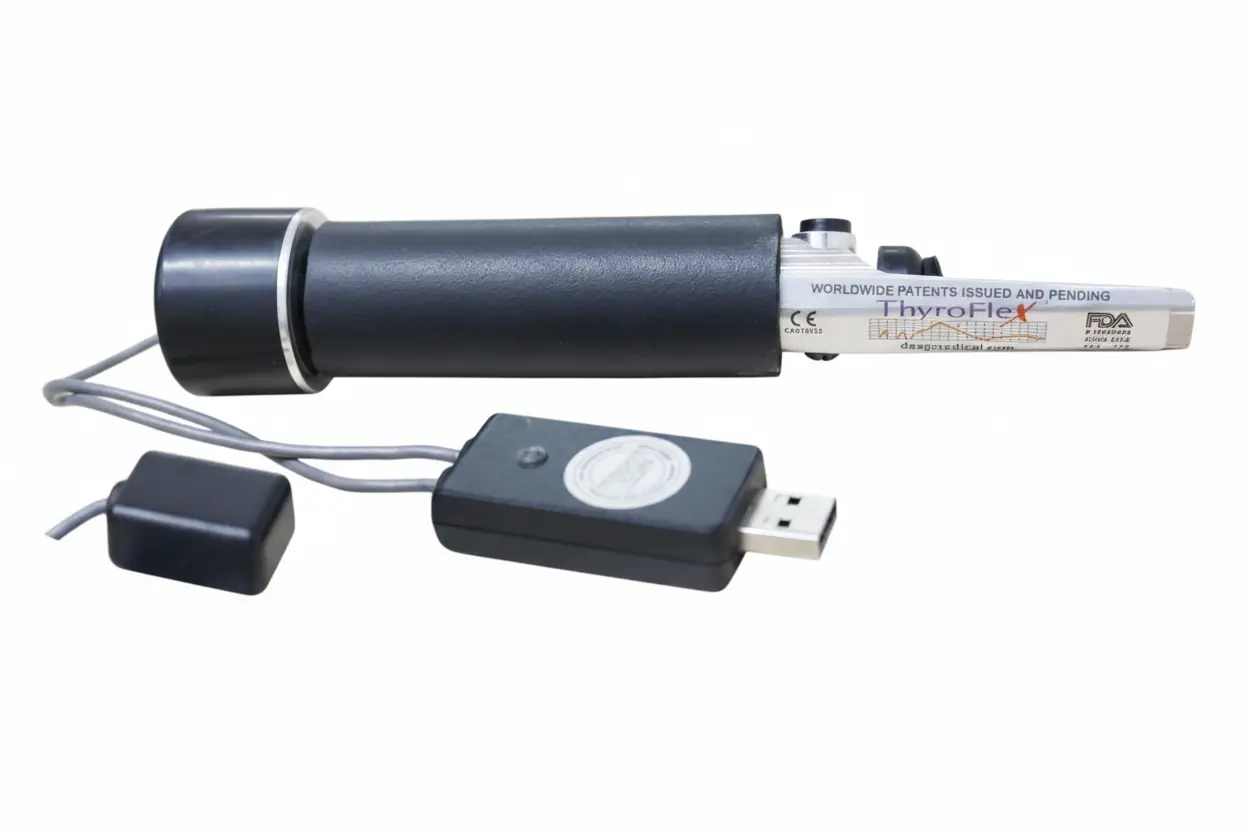 Note médicale Le Thyroflex est un outil d'évaluation fonctionnelle complémentaire au bilan biologique thyroïdien (TSH, T3 libre, T4 libre, anticorps). L'interprétation clinique intègre les deux sources.